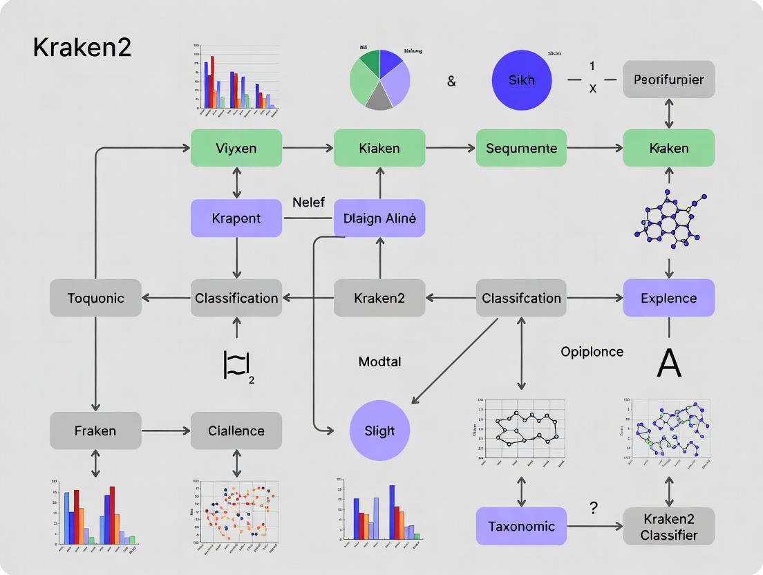 The Kraken2 workflow represents a powerful and flexible cornerstone for modern metagenomic analysis, enabling precise taxonomic profiling essential for biomedical discovery. Mastery requires understanding its algorithmic foundations, implementing a robust and optimized pipeline, and rigorously validating outputs against benchmarks and mock communities. As the field advances, integrating Kraken2/Bracken with strain-level profilers, functional prediction tools, and machine learning pipelines will be crucial. For clinical and pharmaceutical research, establishing standardized, validated Kraken2 workflows is imperative for discovering biomarkers, understanding drug-microbiome interactions, and developing novel microbiome-based therapeutics, ultimately bridging the gap from sequencing data to actionable biological knowledge.