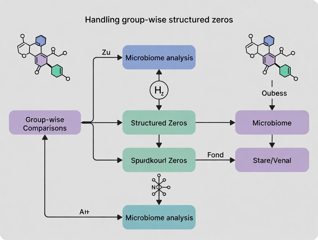 This comprehensive guide addresses the critical challenge of group-wise structured zeros in microbiome data analysis, a common yet often-misunderstood phenomenon where biological absence differs from technical missingness. Tailored for researchers, scientists, and drug development professionals, the article explores the foundational biology behind these zeros, presents and compares current methodological solutions from specialized R packages, provides troubleshooting and optimization strategies for real-world datasets, and validates approaches through comparative analysis. The goal is to equip practitioners with the knowledge to choose and implement appropriate analytical frameworks, thereby increasing the robustness and biological relevance of their findings in therapeutic and diagnostic development.