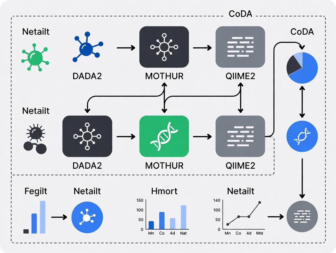This article provides a comprehensive, data-driven evaluation of how DADA2, MOTHUR, and QIIME2 perform when their outputs are subjected to Compositional Data Analysis (CoDA) in biomedical research contexts.