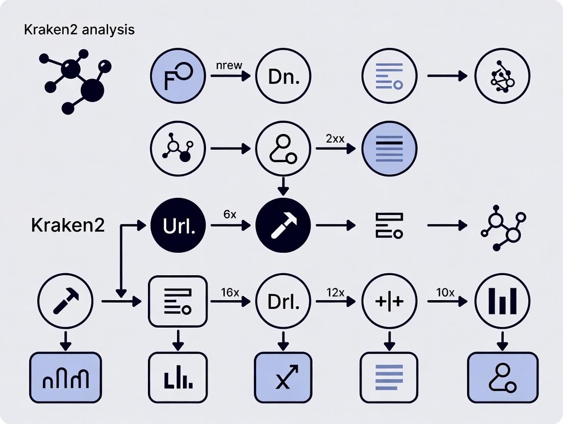 Kraken2 stands as a powerful, flexible cornerstone for high-throughput taxonomic profiling in shotgun metagenomics, offering an exceptional balance of speed and accuracy crucial for large-scale studies. This guide has detailed its foundational logic, practical application, optimization strategies, and comparative landscape. For researchers and drug developers, mastering Kraken2 enables robust characterization of microbial communities, directly informing biomarker discovery, understanding drug-microbiome interactions, and developing microbiome-based therapeutics. Future directions point towards integration with long-read sequencing, improved strain-level resolution, and standardized database curation to enhance clinical translatability. Ultimately, a well-executed Kraken2 analysis provides the reliable taxonomic foundation upon which meaningful biological and clinical hypotheses can be built and tested.