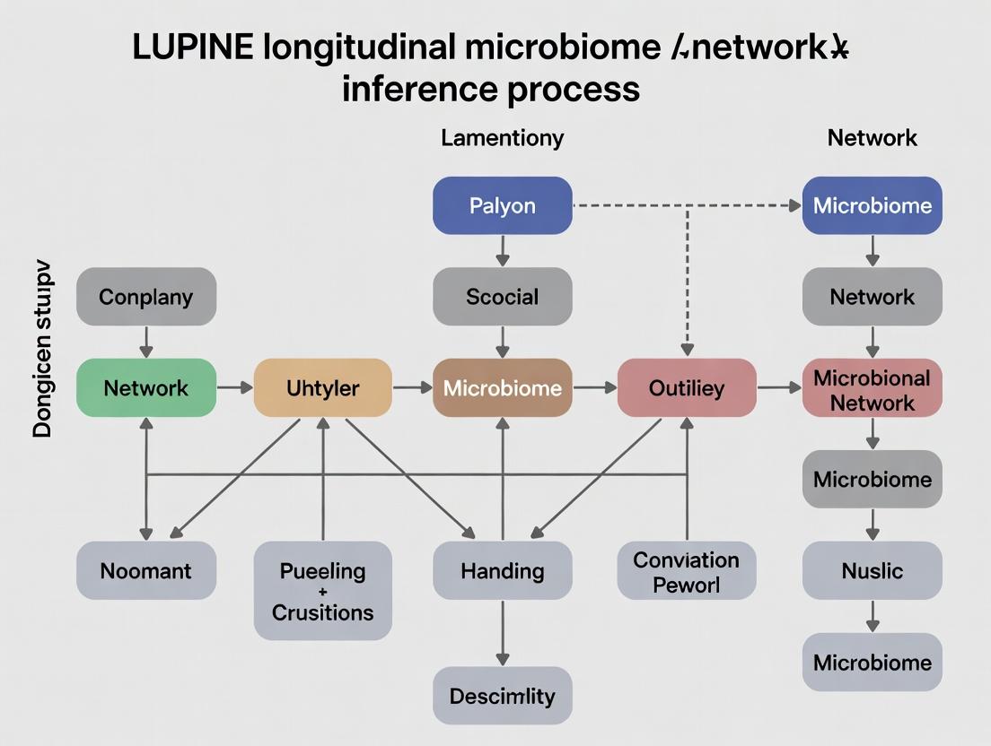 This article provides a detailed exploration of LUPINE (Longitudinal Profiling and INference Engine), a computational framework designed for inferring dynamic microbial association networks from longitudinal microbiome data.